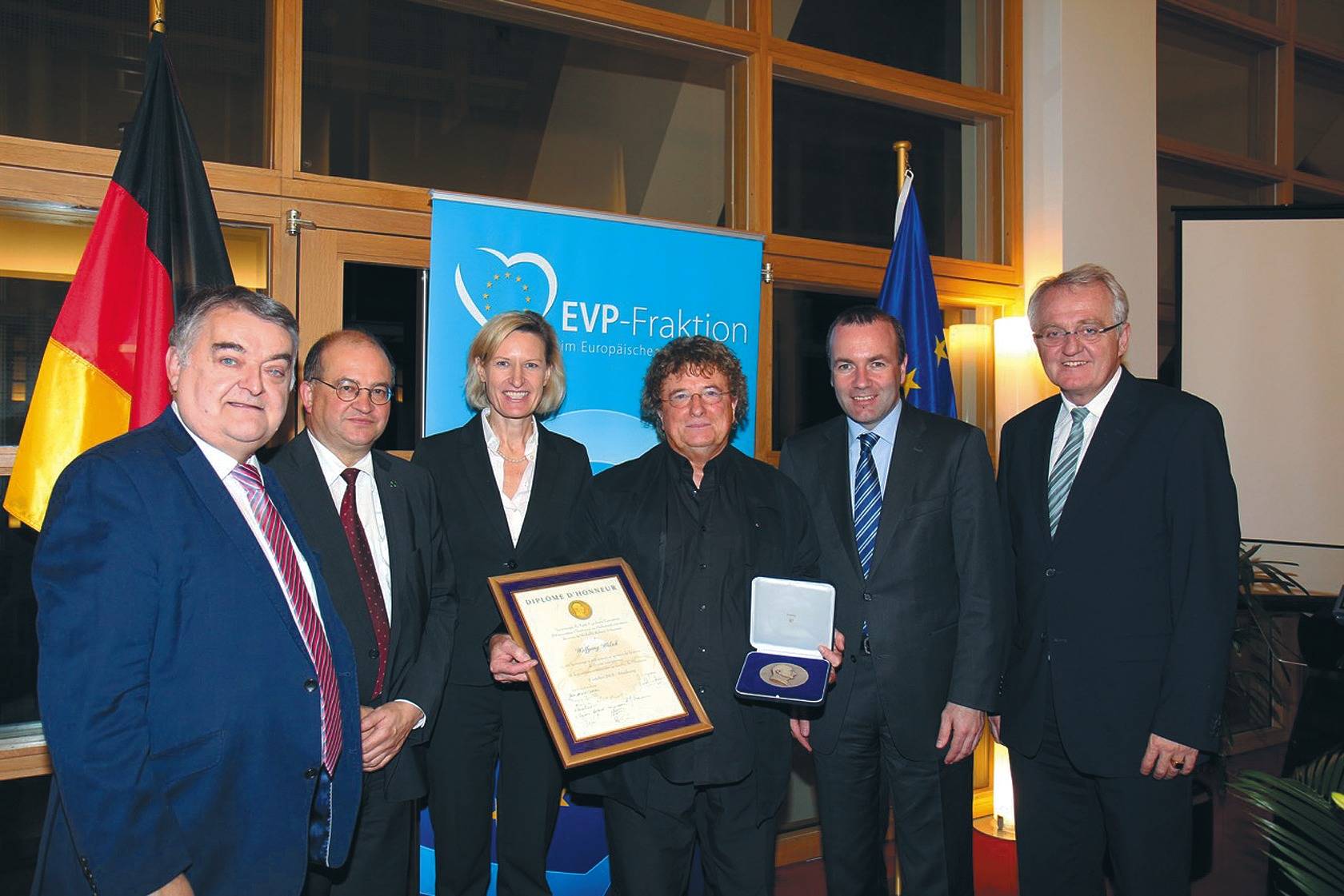 Sinsheim. (zg) Zum 25. Jahrestag der Deutschen Einheit verlieh jetzt die EVP-Fraktion auf Initiative der stellvertretenden Vorsitzenden der CDU/CSU-Gruppe im Europaparlament, Angelika Niebler, in feierlichem Rahmen Wolfgang Welsch aus Sinsheim die Robert-Schuman-Medaille. "Er war Widerstandkämpfer, Stasi-Opfer und Fluchthelfer, der entgegen allen Prognosen den Glauben an Demokratie und Freiheit nie verloren hat."